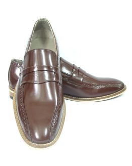 BRWON LEATHER SLIP ON SHOES Article-HU116