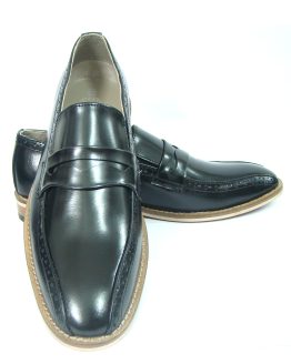 BLACK LEATHER SLIP ON SHOES Article-HU107