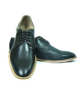 BLACK LEATHER DERBY SHOES Article-HU117