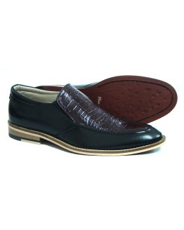 CHERRY & BLACK LEATHER SLIP ON SHOES Article-HU104