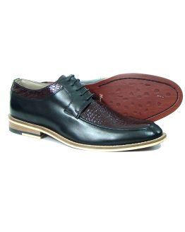 BLACK DERBY SHOES WITH TWO-TONE HAND FINISH CROCO LEATHER ARTICLE-HU182