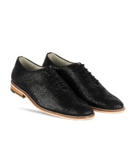BLACK OXFORD SHOES WITH TWO-TONE HAND FINISH CROCO LEATHER ARTICLE-HU221