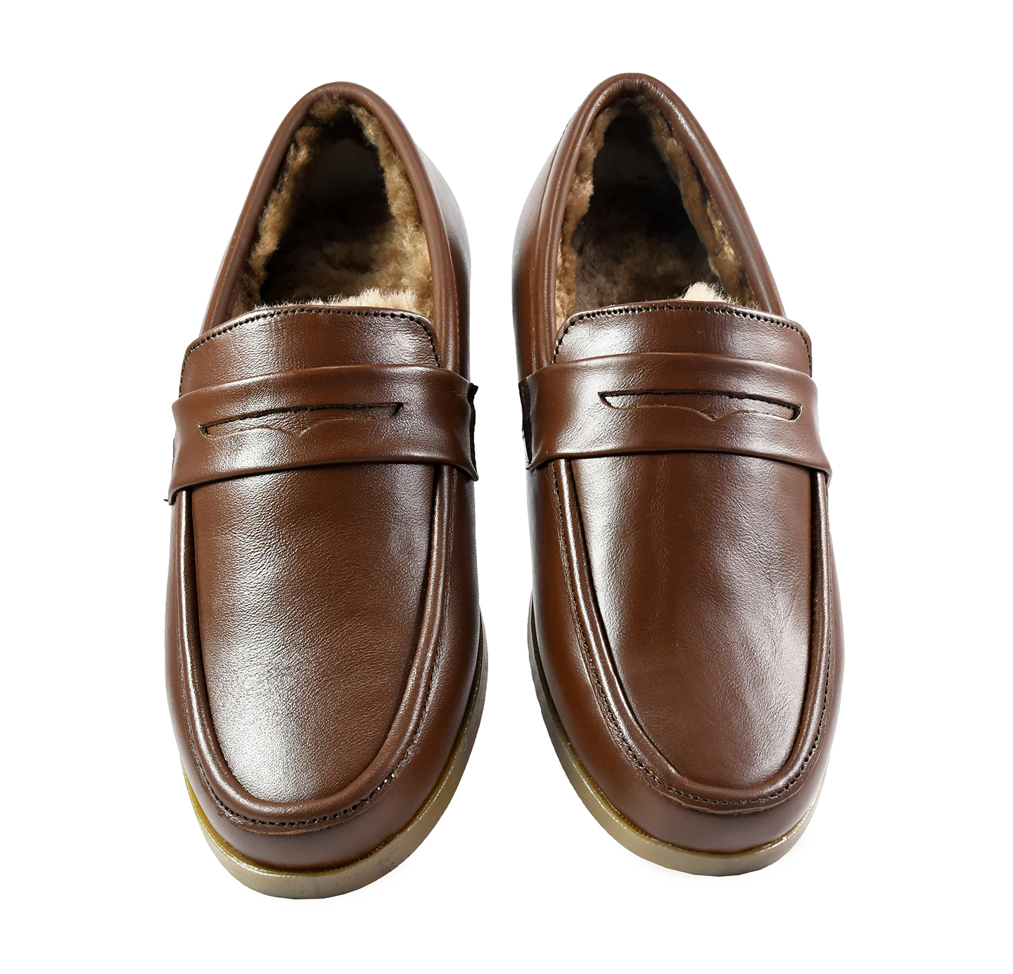 Winter slip on Shoes : Brown Moccasins with Pure Fur, breathable Softy Leather Upper, genuine fur Lining with fur footpad for optimum comfort. Ultra Flexible Sole. Article : MF002 UK/India 3 to 15