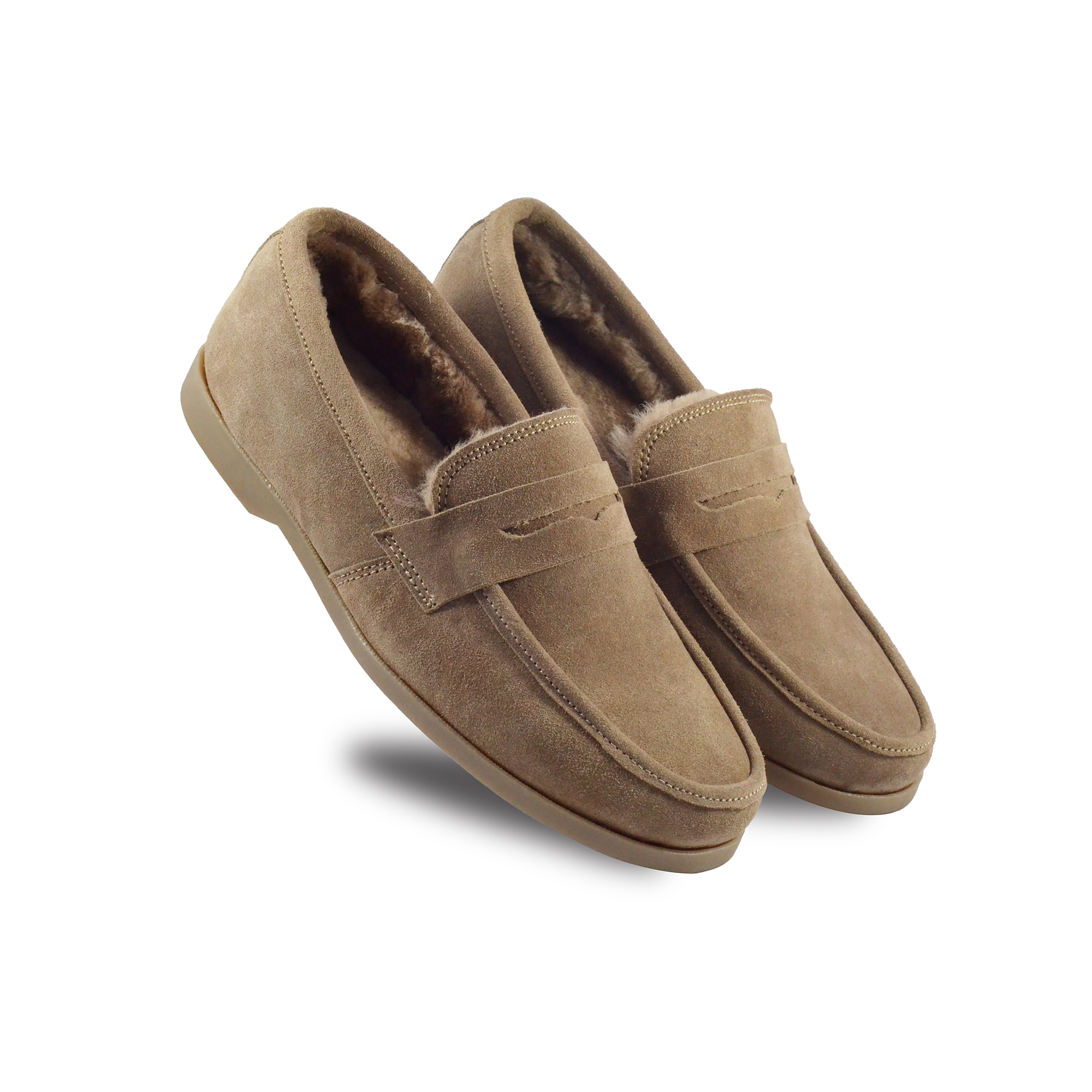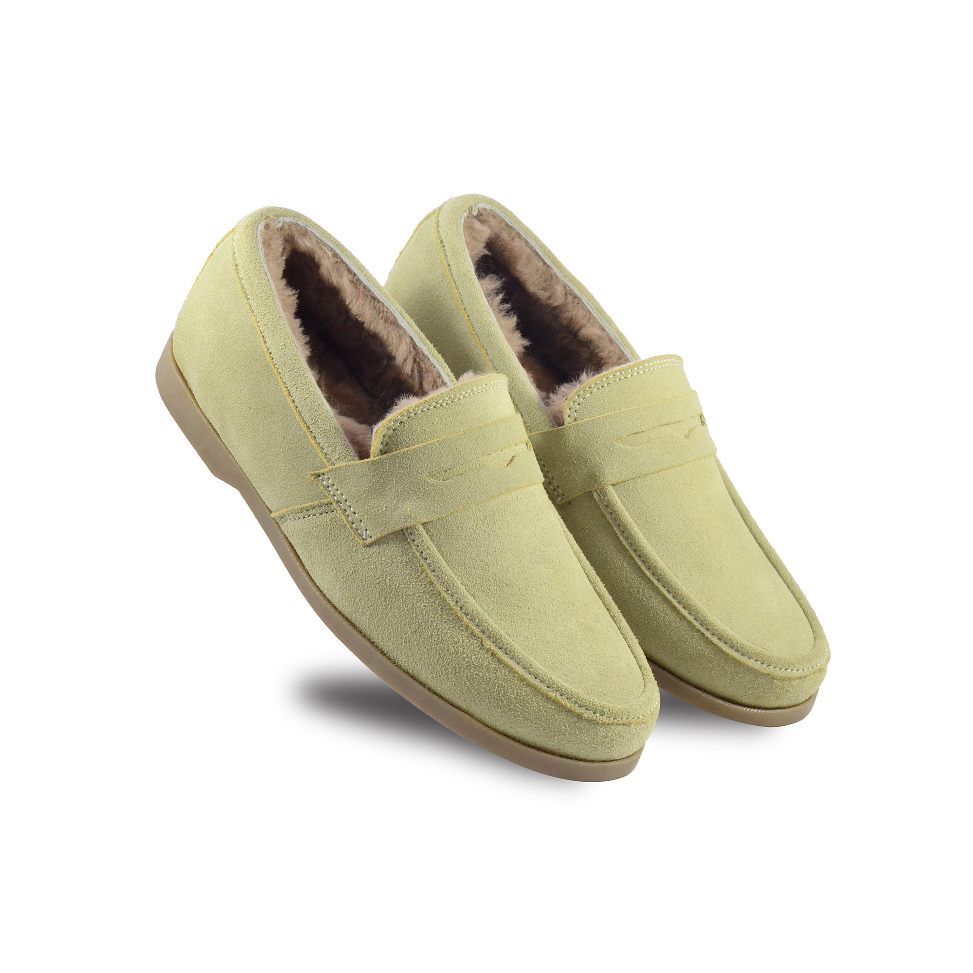 Winter Slip on Shoes : Beige Moccasins with Pure Fur, breathable Suede Leather Upper, genuine fur Lining with fur footpad for optimum comfort. Ultra Flexible Sole. Article : MFS001 UK/India 3 to 15