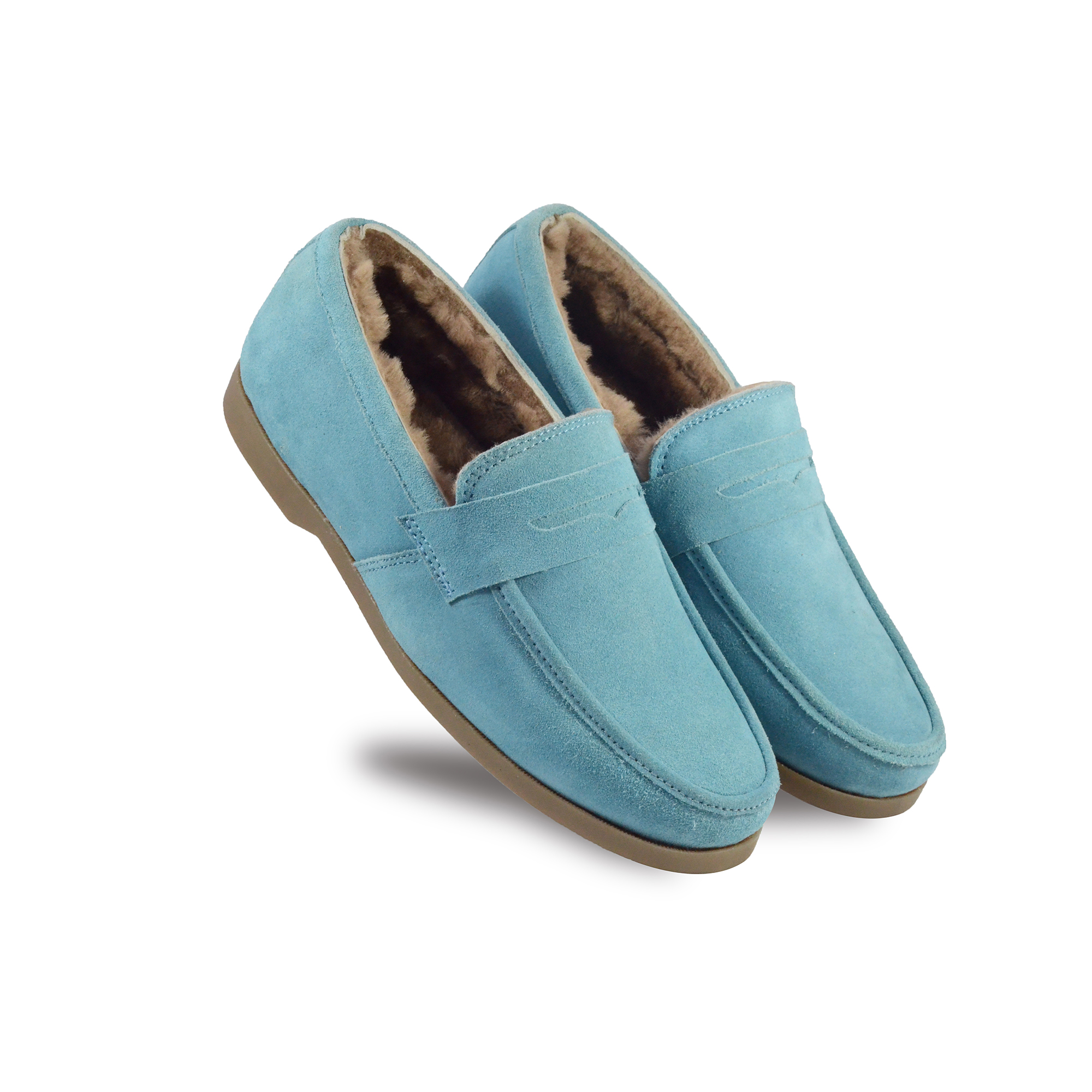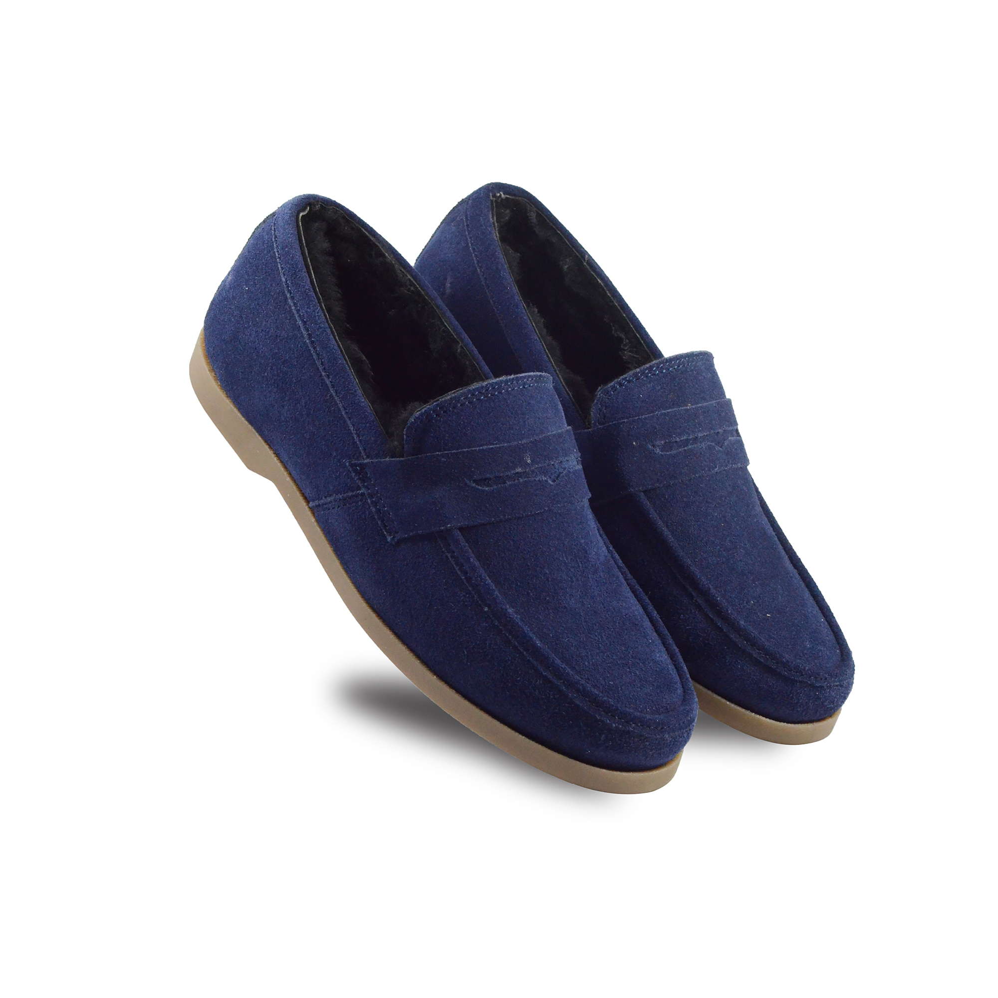 Winter Slip on Shoes : Blue Moccasins with Pure Fur, breathable Suede Leather Upper, genuine fur Lining with fur footpad for optimum comfort. Ultra Flexible Sole. Article : MFS002 UK/India 3 to 15