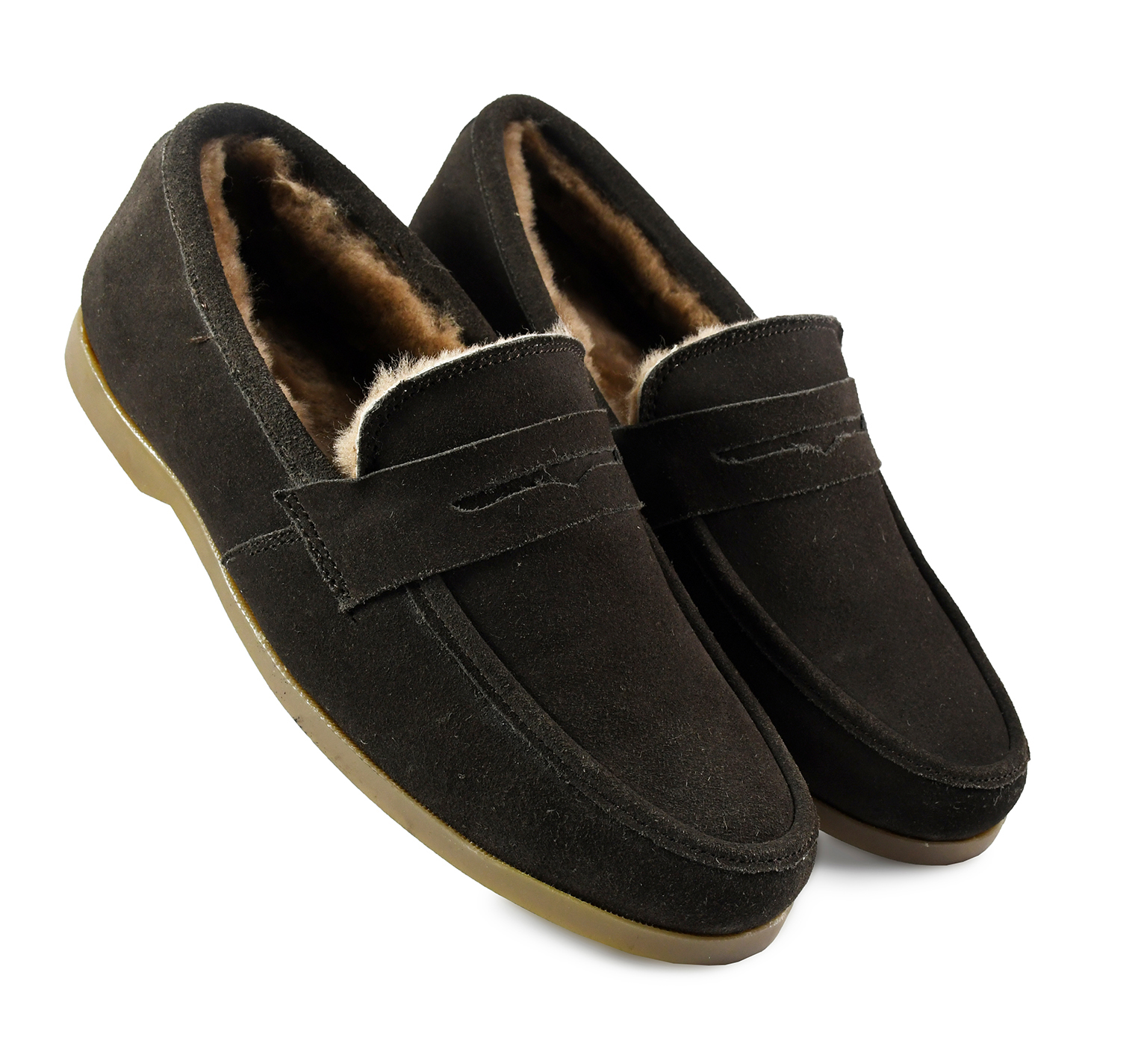 Winter Slip on Shoes : Brown Moccasins with Pure Fur, breathable Suede Leather Upper, genuine fur Lining with fur footpad for optimum comfort. Ultra Flexible Sole. Article : MFS004 UK/India 3 to15