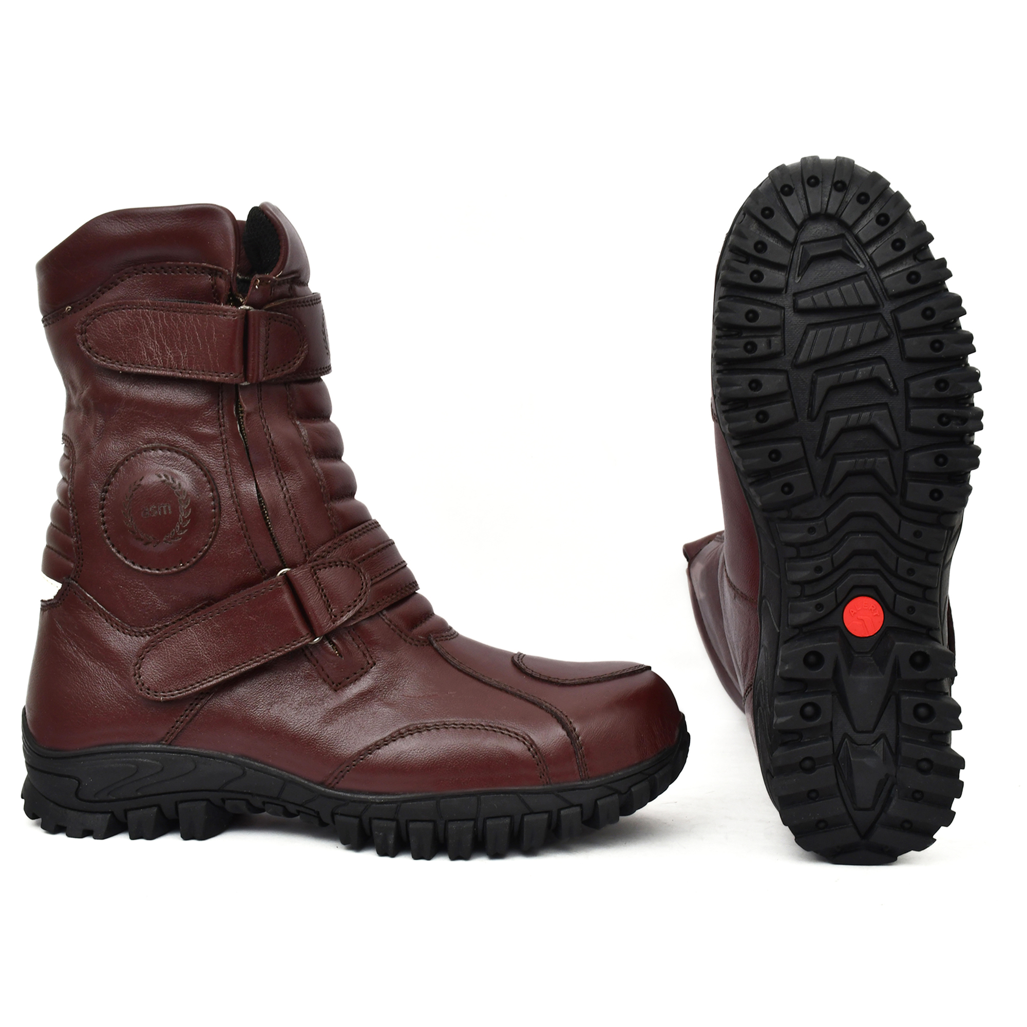 Biker Boots : Cherry Brown Leather Waterproof Boots with Steel Toe, Heavy Duty Rubber Sole. Article : 708CherryBrown