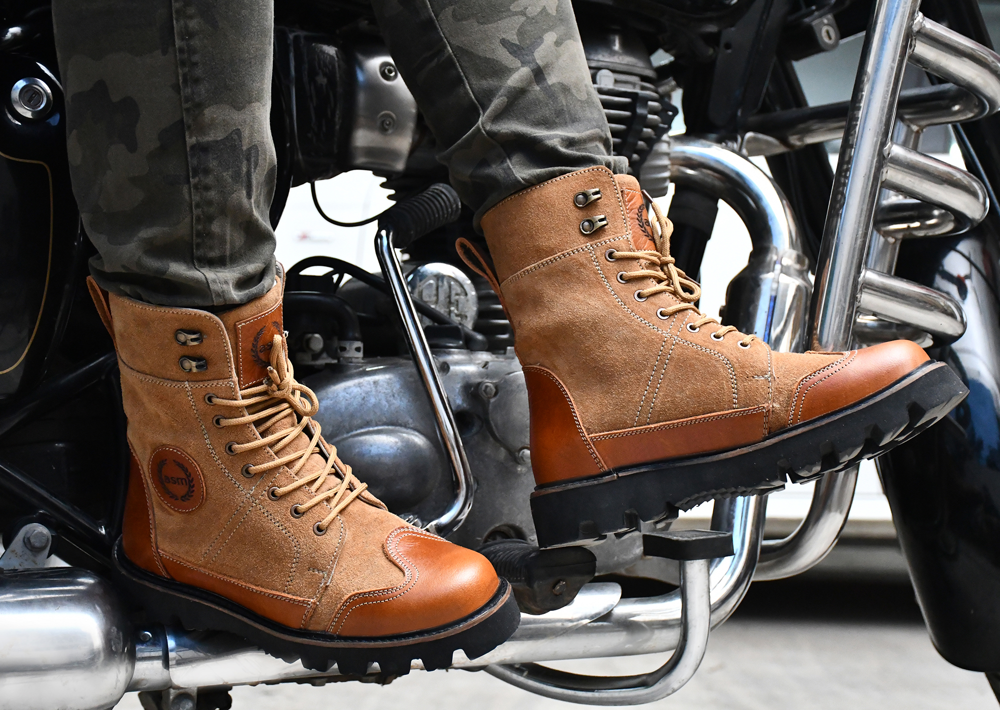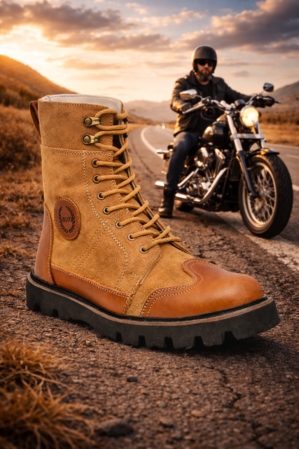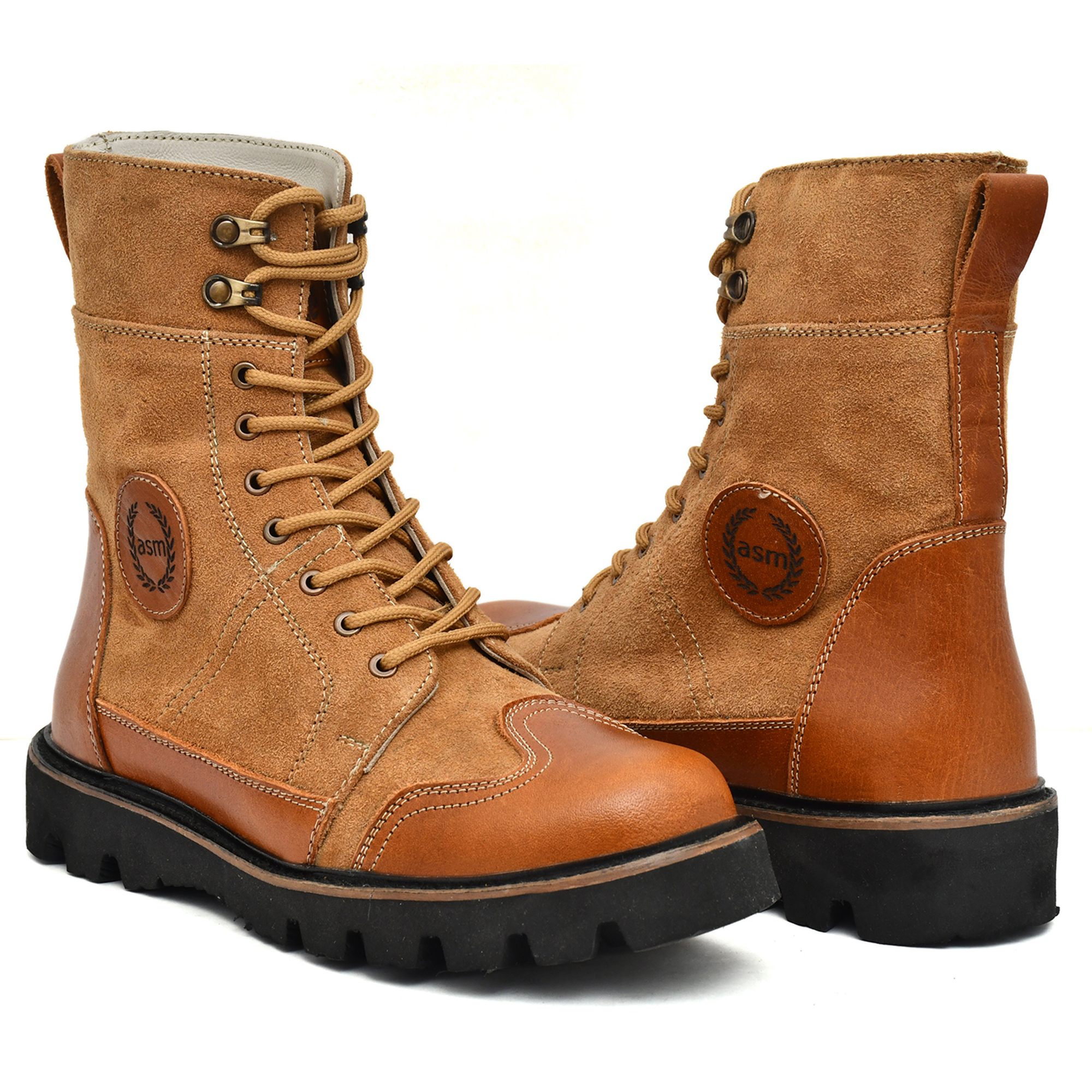 Product Name Biker Boots : Urban Rugged Tan & Suede leather boots for bikers with EVA Sole. Article : 702E-STan