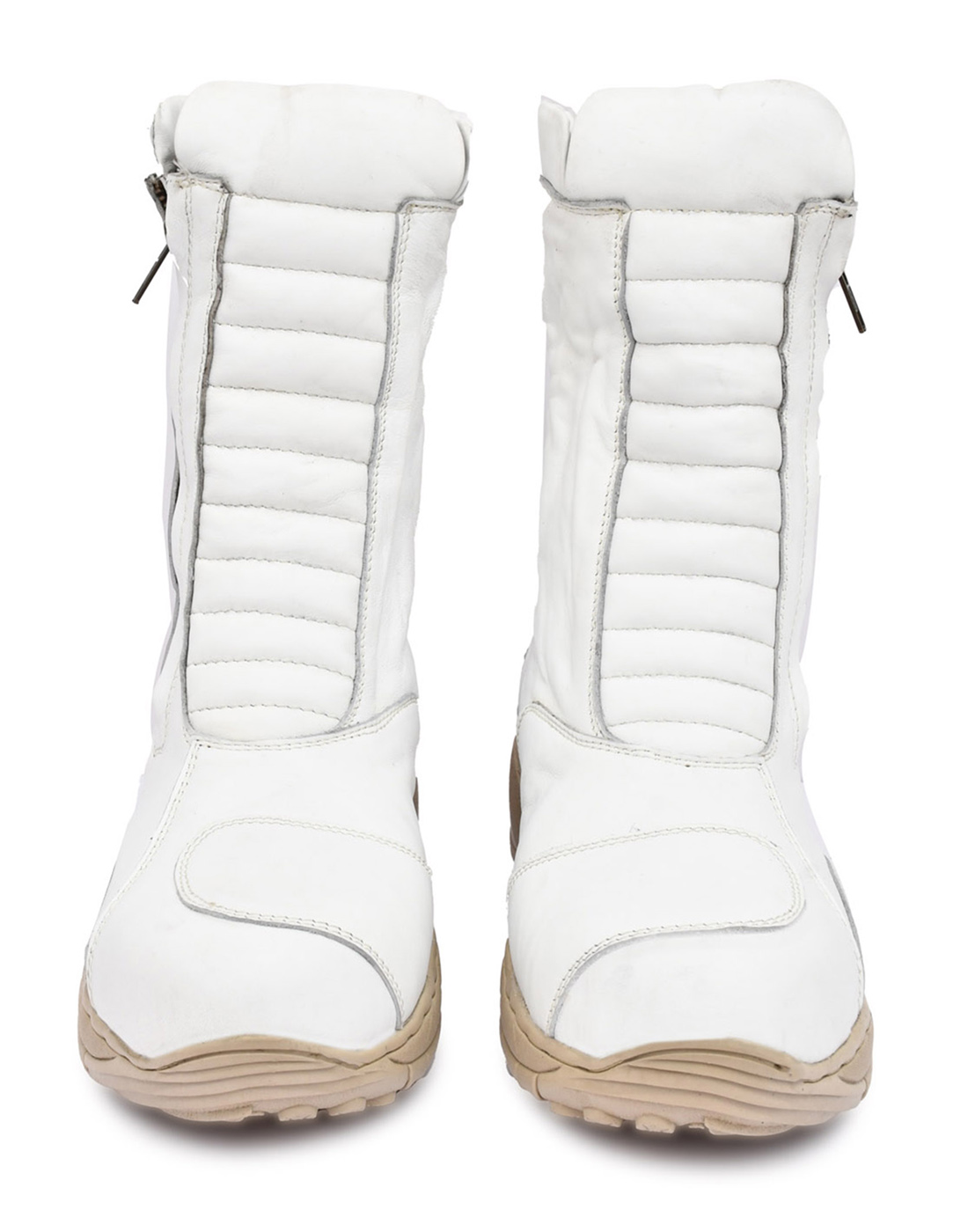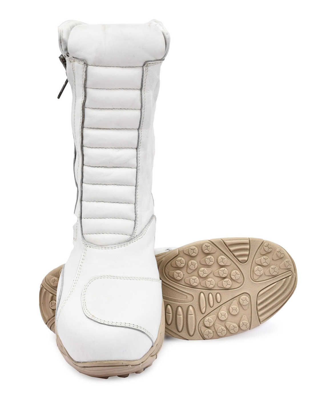 Biker Boots : White Leather Waterproof Boots with Steel Toe, Heavy Duty Phylon Sole. Article : 706white