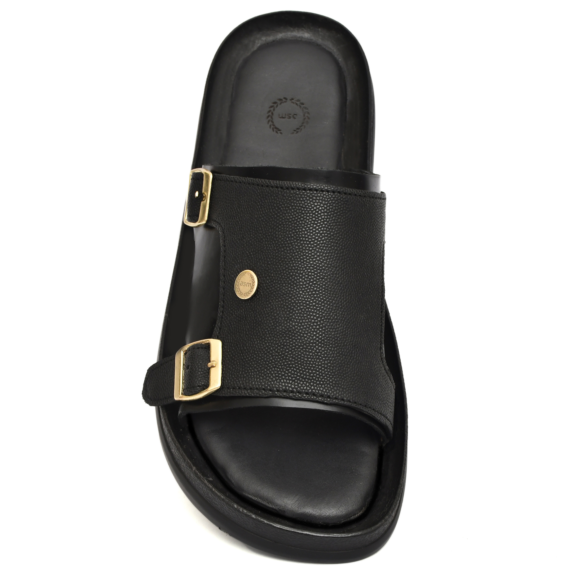 Black Leather Slippers for Men by asm. Article: SL011-Black- Size available: UK 5-11