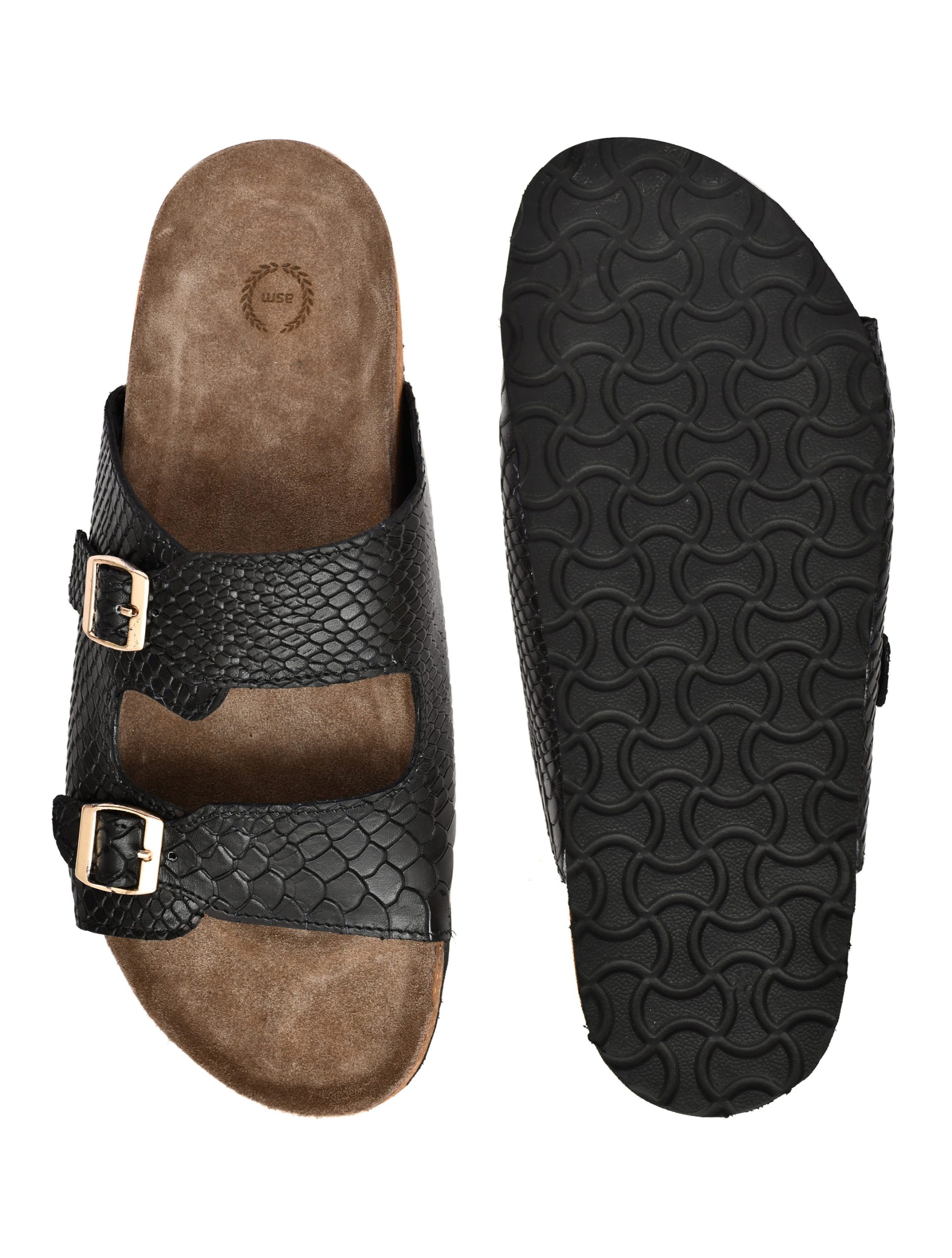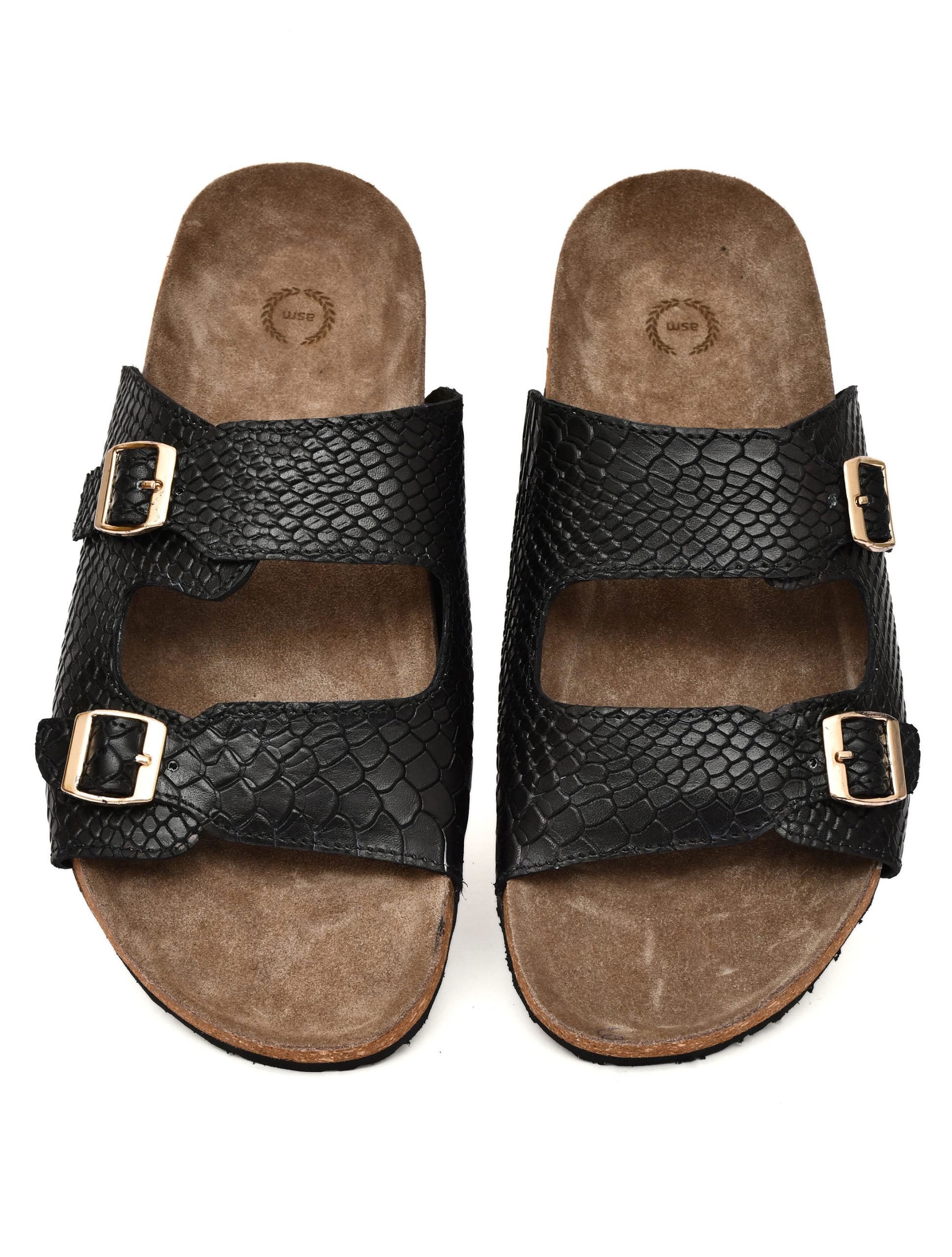 Cork Sandals : Genuine Cobra embossed leather with Cork footpad Sandals for men by asm.