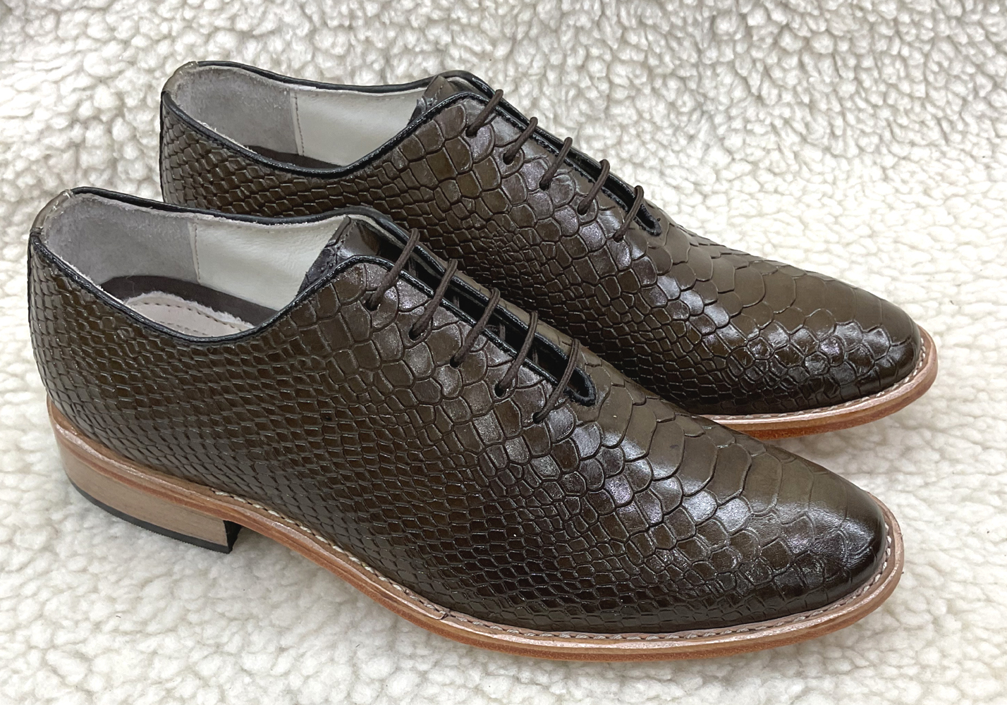 Type : Green Cobra embossed Leather Derby Shoes