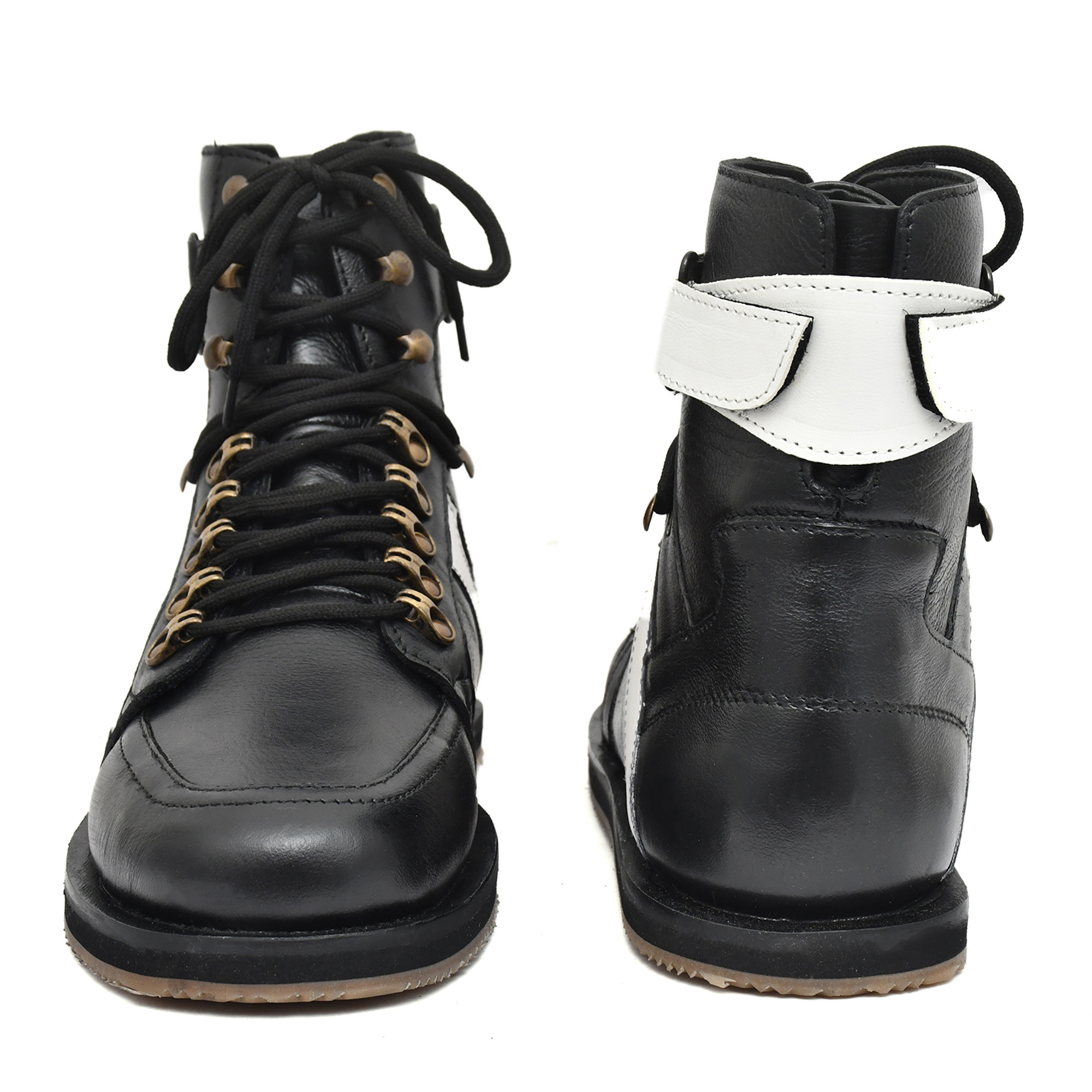 Shooting Boots for Rifle : Black & White leather boots, highly recommended for professional shooters. Article : Rifle01-BW