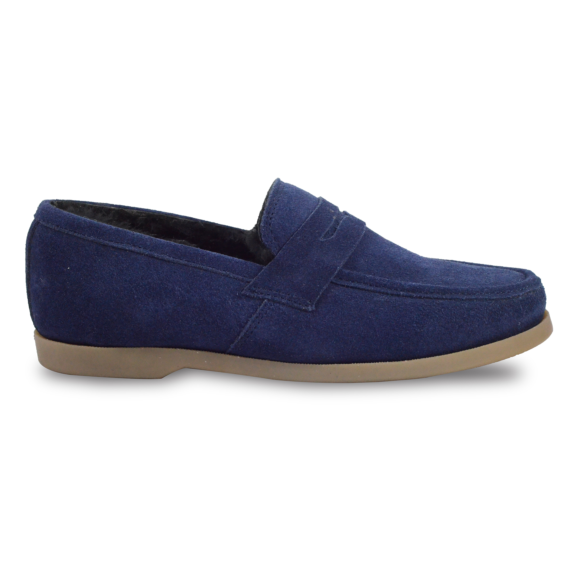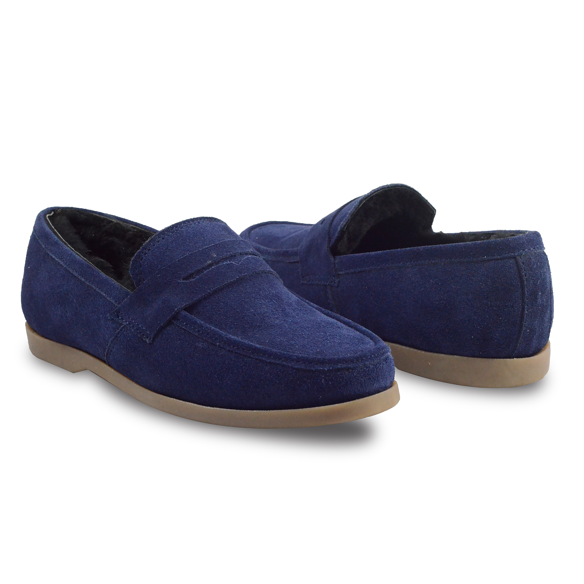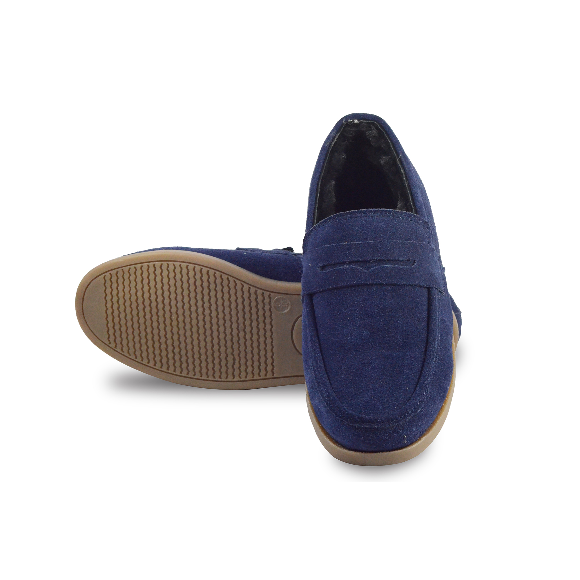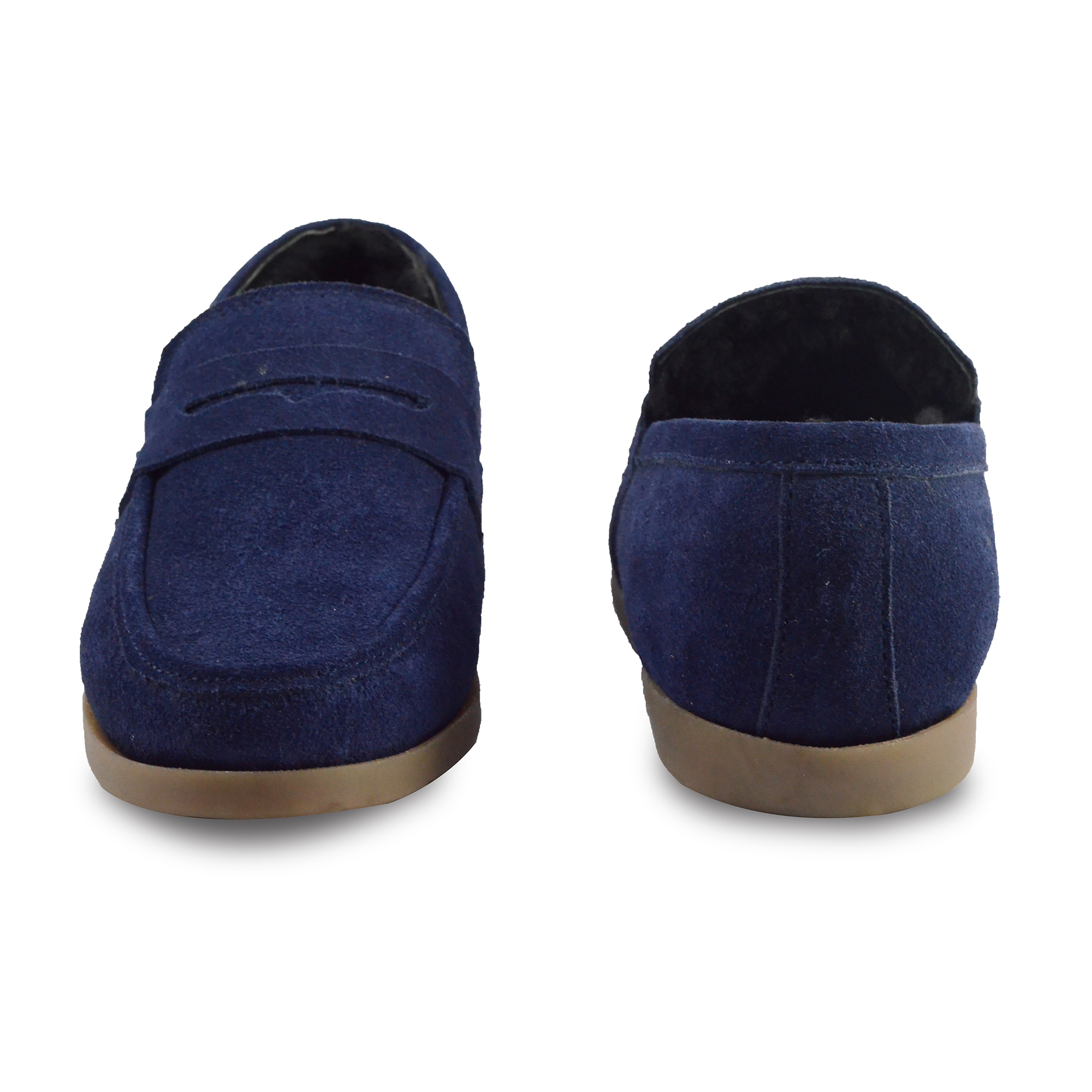 Winter Slip on Shoes : Blue Moccasins with Pure Fur, breathable Suede Leather Upper, genuine fur Lining with fur footpad for optimum comfort. Ultra Flexible Sole. Article : MFS002 UK/India 3 to 15