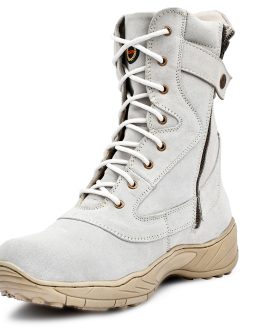 Biker Boots / SWAT Tactical Side-Zip White Leather 9 Inches Long Boots. Steel Toe. (optional) Article-703