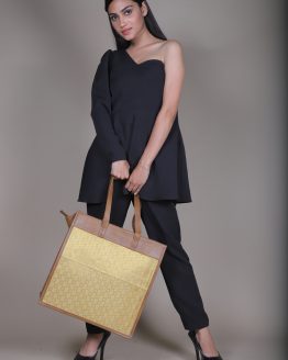 Tote Gift Bag : GOLD SILK & TAN SOFTY LEATHER BAG