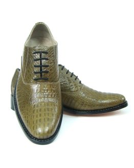 HIGH FASHION OLIVE GREEN ALLIGATOR LEATHER NAGRA PARTY SHOES. ARTICLE- N144
