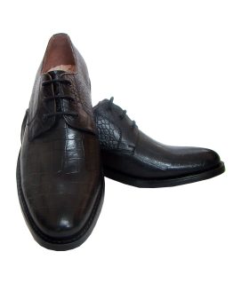BLACK DERBY SHOES WITH TWO-TONE HAND FINISH ALLIGATOR LEATHER ARTICLE-HU163
